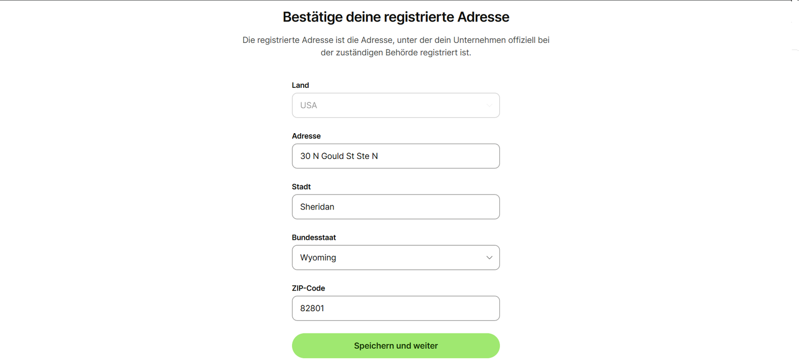 Schritt 5: Registrierte Unternehmensadresse eintragen