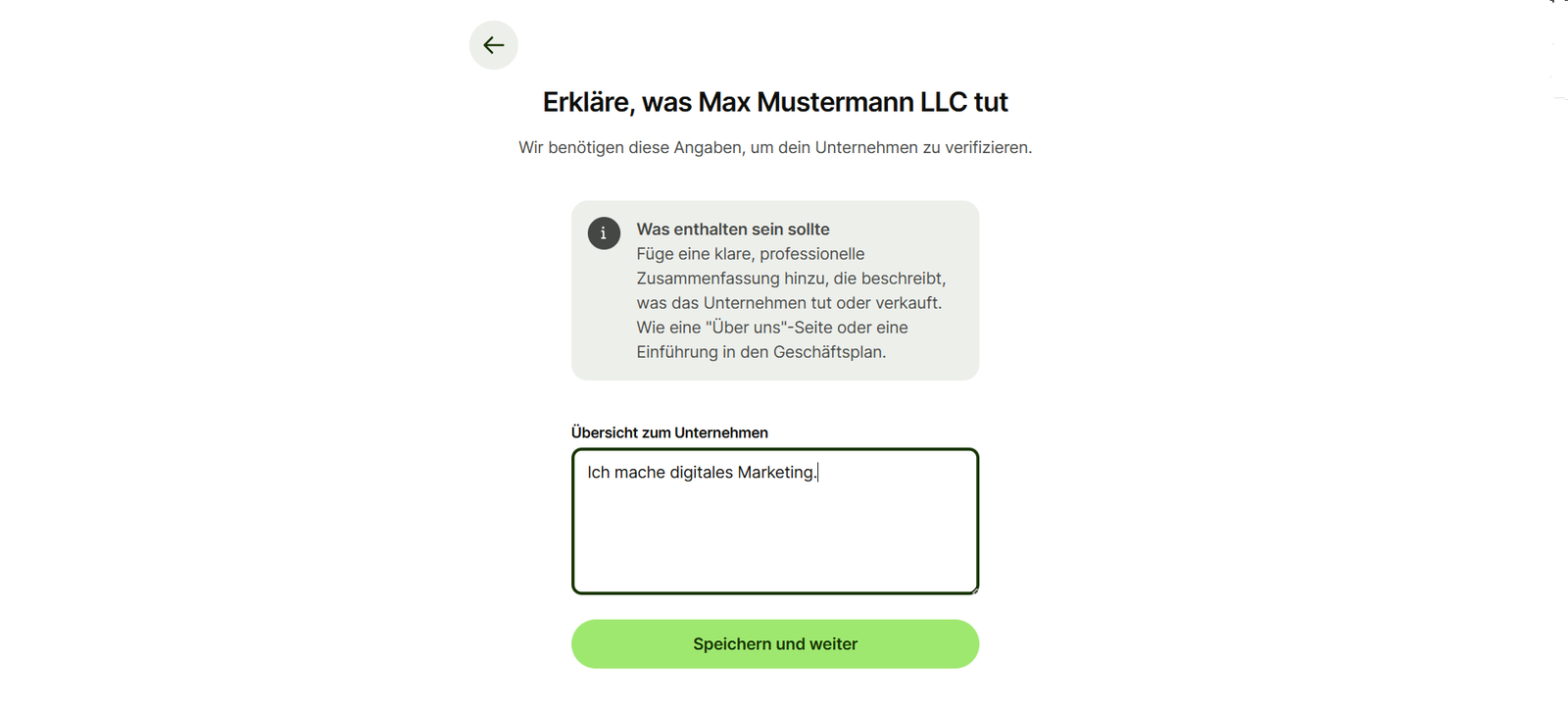 Schritt 7: Beschreibe die Tätigkeit deiner LLC