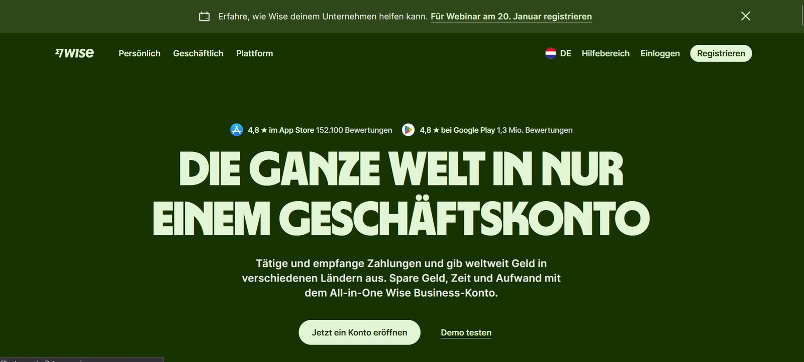 Gehe auf www.wise.com/business und klicke auf „Konto eröffnen“.