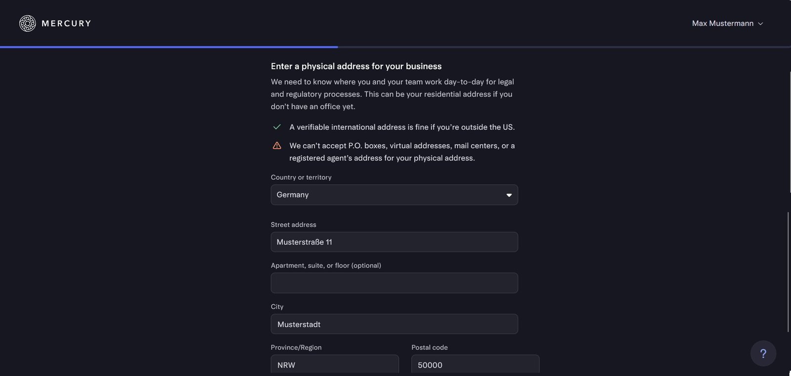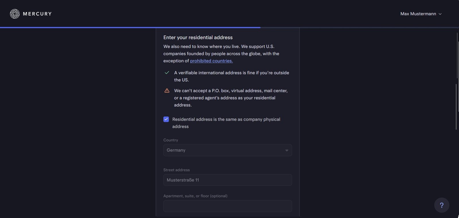 Wenn du deine private Adresse nicht angeben möchtest, können wir dir auf Wunsch eine geschäftliche Adresse zur Verfügung stellen: Mehr erfahren
