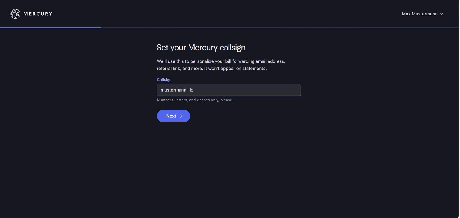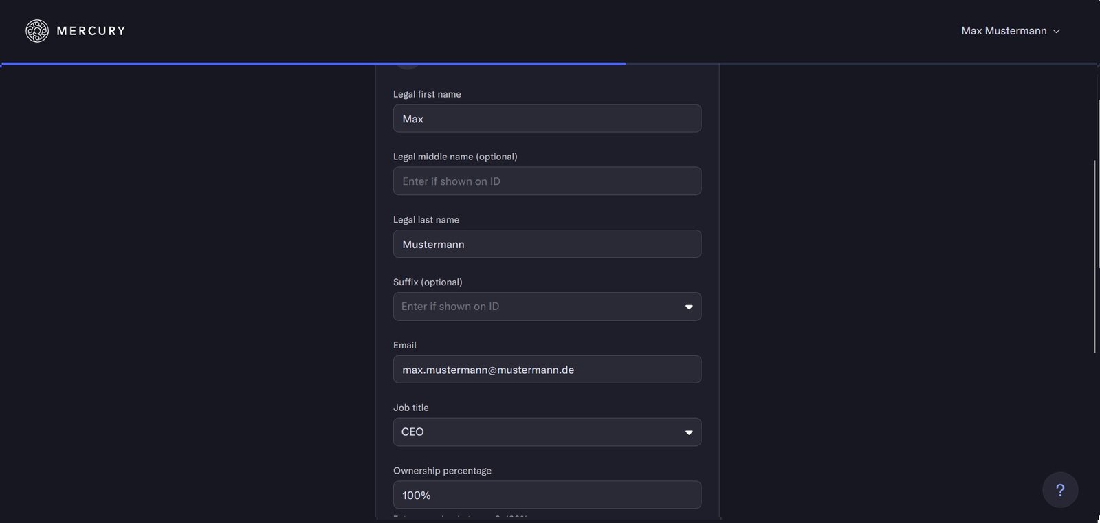 Achte darauf, Schreibweise und Format 1:1 zu übernehmen, damit Mercury die Daten korrekt verifizieren kann.