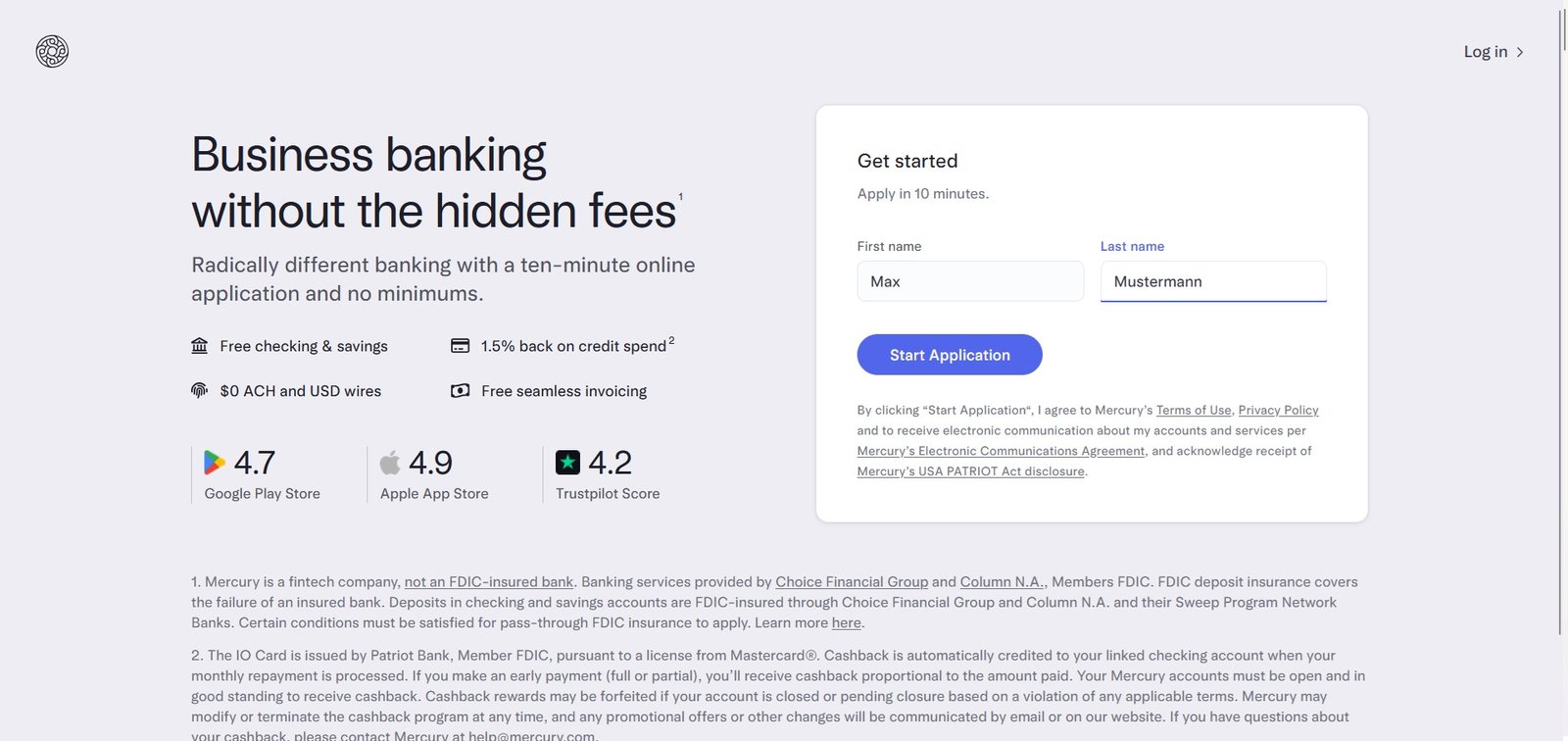 Mercury ist hier die perfekte Lösung ein vollständig onlinebasiertes Business-Banking, das speziell für Startups, E-Commerce-Seller, Agenturen und internationale LLC-Inhaber entwickelt wurde. Die Kontoeröffnung ist schnell, unkompliziert und zu 100 % digital möglich, egal, ob du in Deutschland, Europa oder als Digital Nomad unterwegs bist.