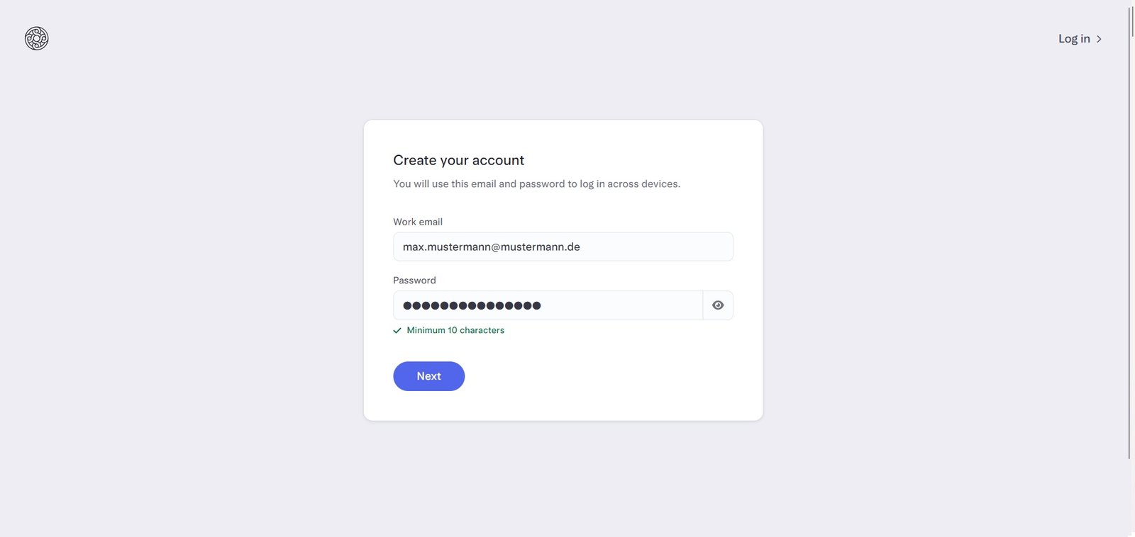 Wähle ein starkes Passwort aus Groß- und Kleinbuchstaben, Zahlen und Sonderzeichen.